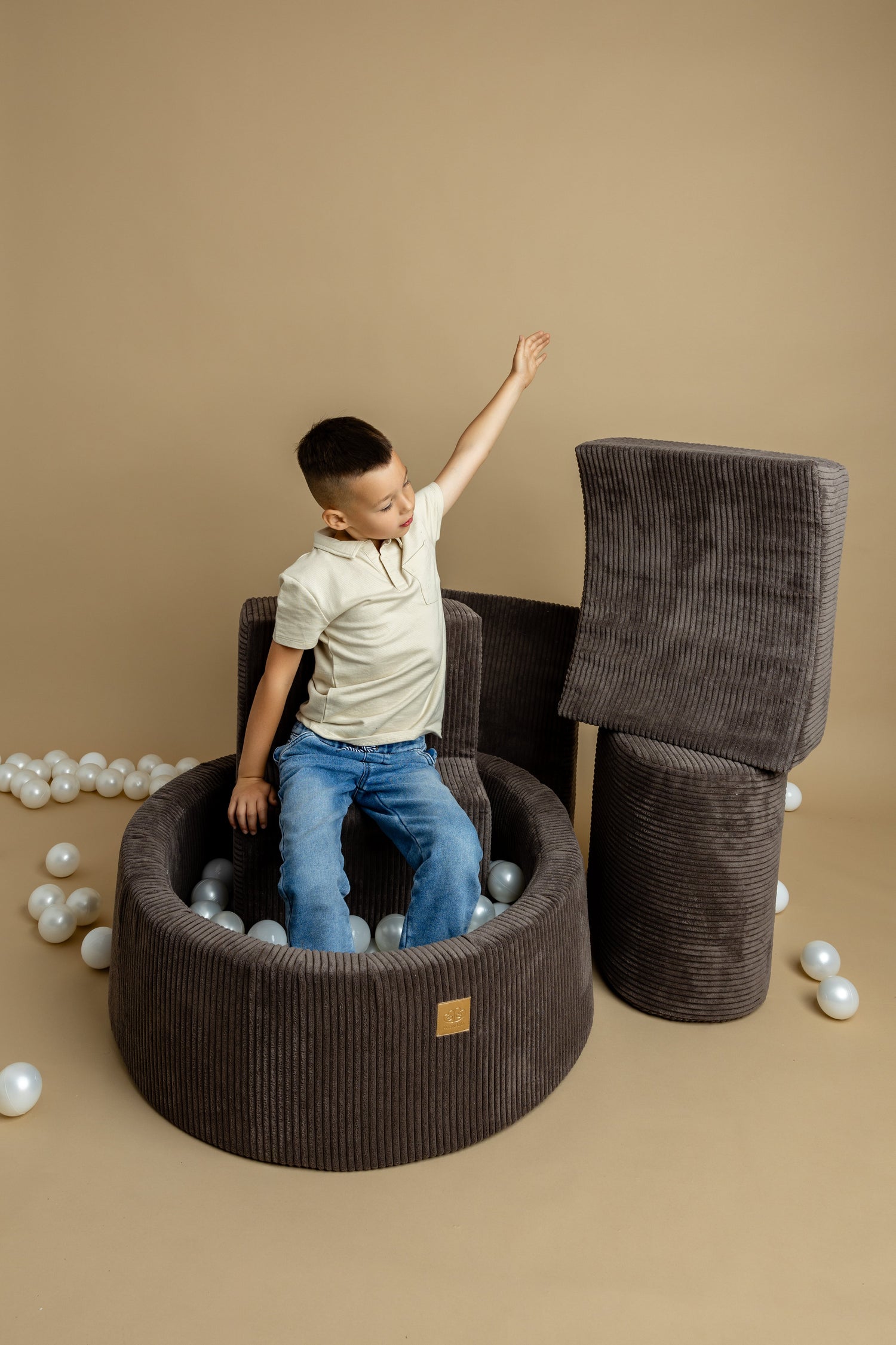 MeowBaby® hnědá pěnová hrací sada s míčkovým bazénkem – 4dílný set (hnědé, zlaté a bílé kuličky)